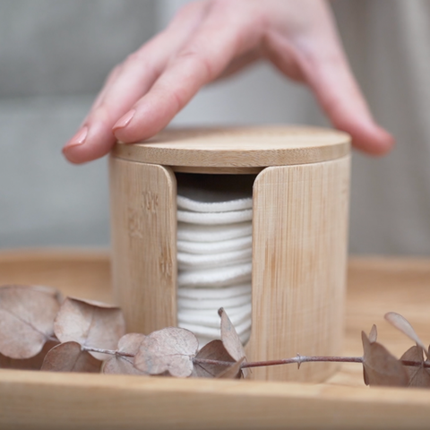 Crafted from 100% sustainable bamboo, this beautifully designed piece keeps your reusable facial rounds organised and within easy reach.